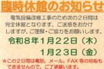 12月14日(日) 13時~15時 富士見原区集会所(富士見原1丁目33) 1月12日(月・祝) 13時~15時 清後区公民館(清後143-3) 1月25日(日) 13時~15時 二の岡地区コミュニティ併用施設(二の岡1 […]