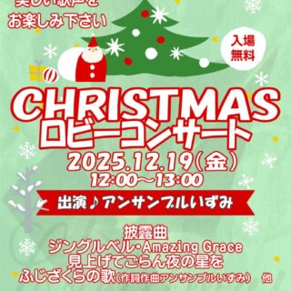クリスマスロビーコンサートを開催します! 市民交流センターロビーにて、クリスマスにちなんだ曲や、アンサンブルをぜひお聞きください♪ どなたでも無料でご参加いただ 続きはコチラ