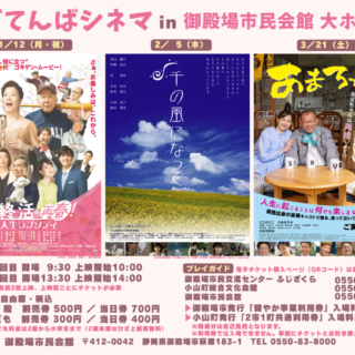 御殿場市民会館主催の「ごてんばシネマ・ツキイチ」上映作品『お終活 再春!人生ラプソディ』『千の風になって』『あまろっく』の前売券を、御殿場市民交流センターでも販 続きはコチラ
